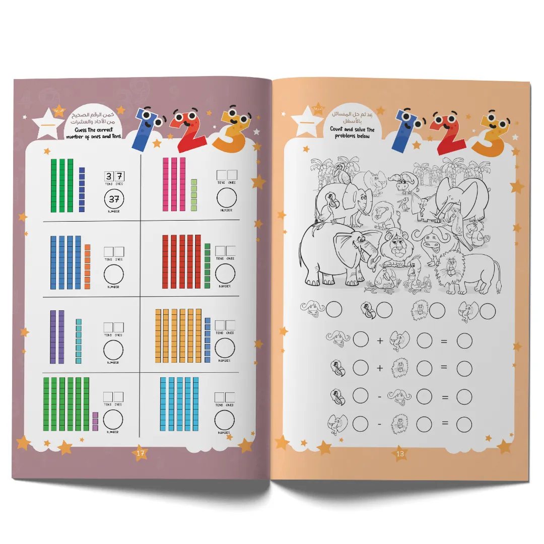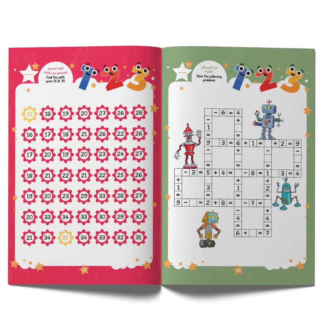 يقدّم الكتاب مجموعة كبيرة من التمارين المتدرجة والمتنوعة، المصمّمة خصيصًا لتعزيز الفهم السريع وتنمية المهارات العددية لدى الطفل، من خلال أفكار مبتكرة وطريقة عرض سهلة تشجّع على الاستمرار.